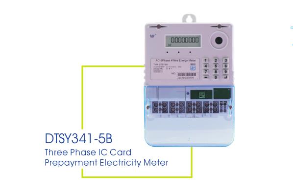 DTSY341-5B is a three phases four wires class 1 keypad prepayment static electricity meter that that supports GPRS module.